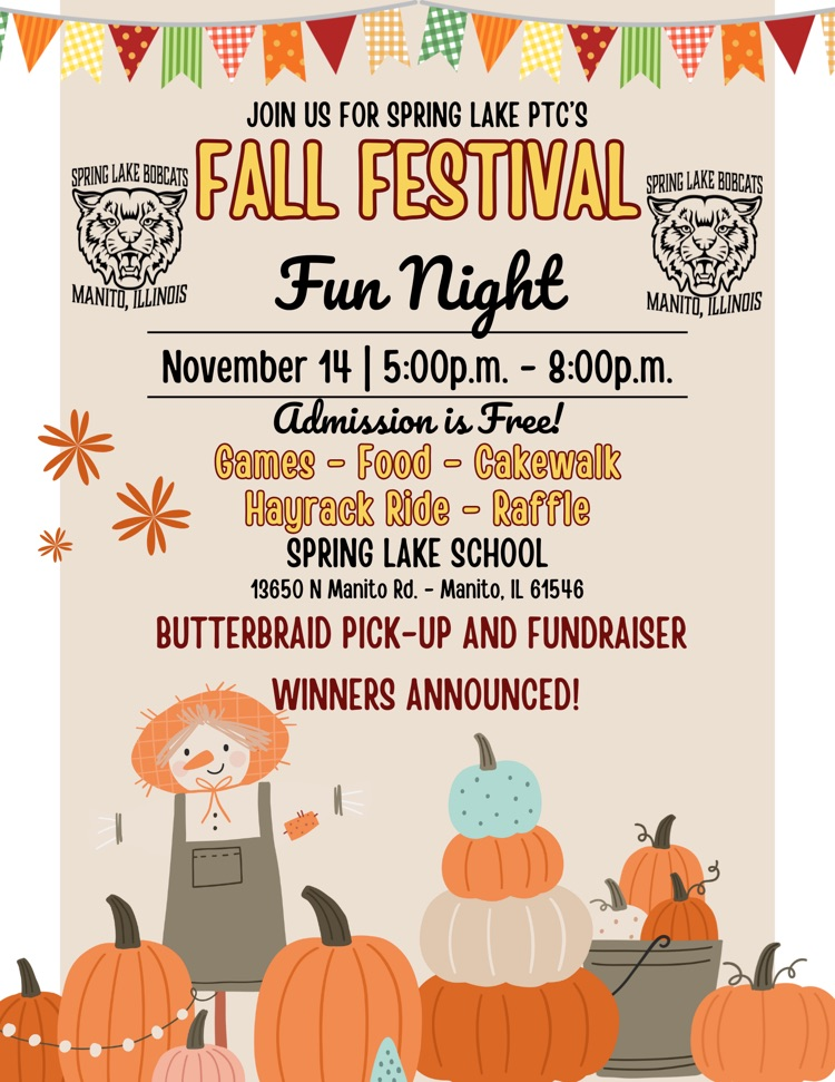 Due to a delivery change, we are asking parents to please pick up their Butter Braid Order on Wednesday, November 12, 2025, instead of Friday, November 14, 2025. Our delivery is scheduled between the hours of 1pm-2pm. We plan to have orders sorted and ready for pick up at 4:30-5:00 pm. If you wish to pick at an earlier time, you must notify the school office via phone or email (smurphy@springlake606.org) and we will try to accommodate your request. Thank you for your support! -PTC
