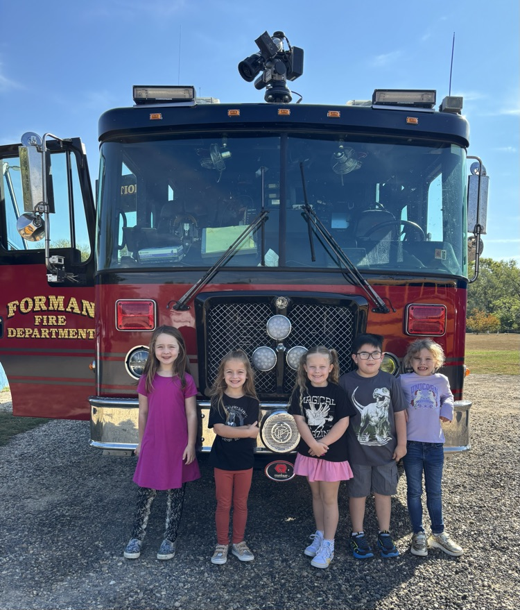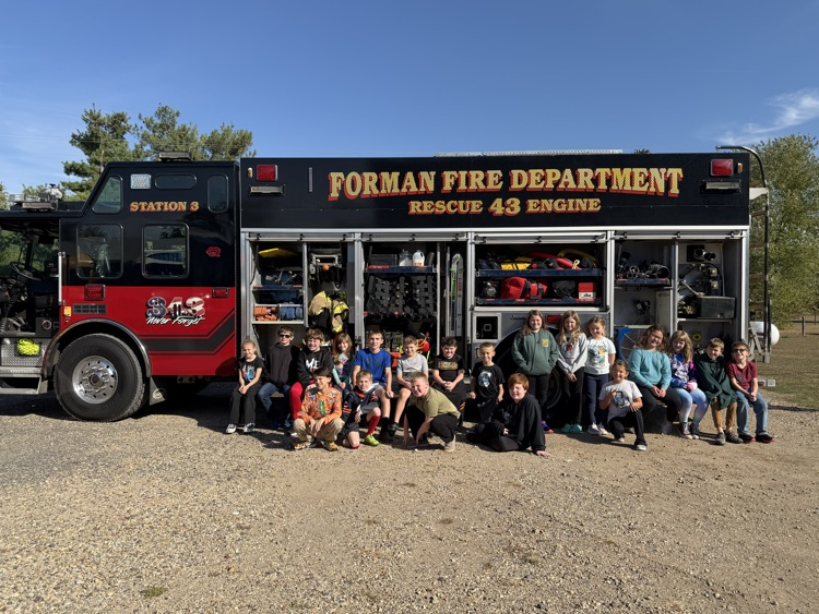 A huge thank-you to the Forman Fire Department for visiting our school today! Our K–2 students had a blast touring the fire truck and learning about firefighter gear. Meanwhile, our 3–6 graders got hands-on experience mastering the fire extinguisher.