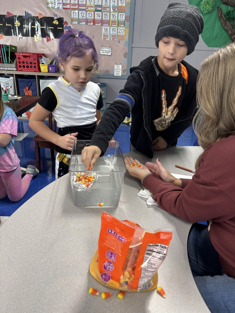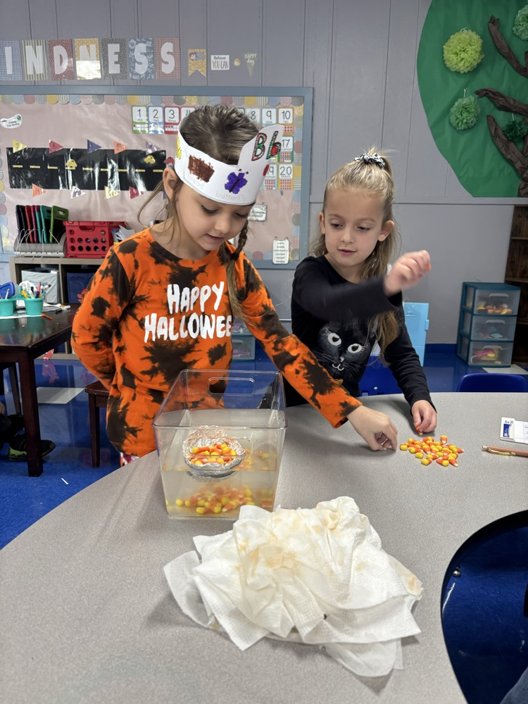 After lots of creative designs and careful testing, Emma and Haylah built the winning boat, which held an impressive 54 candy corn pieces before sinking!