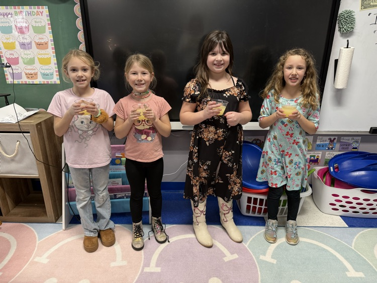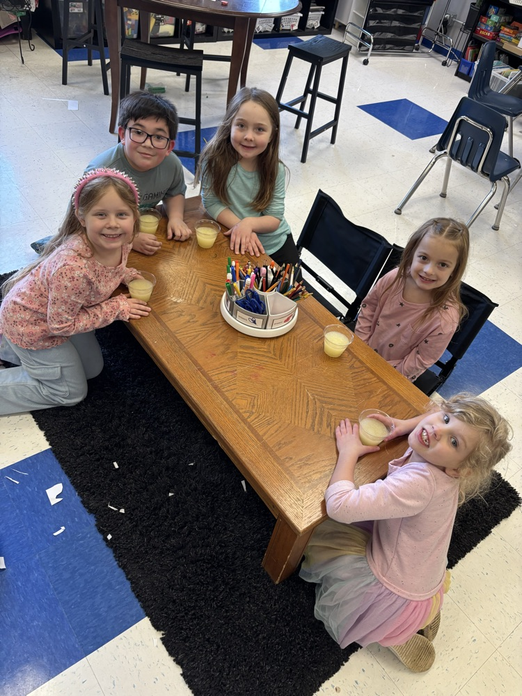 Our first and second graders have been studying states of matter. To reinforce the idea that liquids can freeze into solids, students made lemonade slushies!